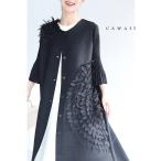 Sから2L対応 黒 シアーな花びらデコレーションのプリーツロングカーディガン