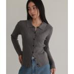 カーディガン 「トレンド」衿付きワイドリブニット レディース