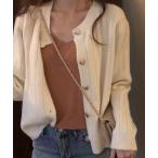 カーディガン ワイドリブスキッパークルーネックカーディガン レディース