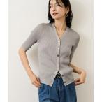 カーディガン ラメワイドリブ5分袖シアーカーディガン/イージーケア レディース
