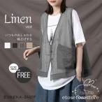 ベスト レディース 春夏 リネン ジレ おしゃれ 夏 薄手 前開き トップス ゆったり 麻 大きいサイズ サマージャケット ノースリーブ 羽織り カジュアル 体型カ