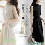 ワンピース 夏 レディース 黒 ドレス 結婚式 ノースリーブ お呼ばれ 膝丈 ロング 着痩せ ハイネック 大人 女子力 フェミニン シンプル 透けない カジ