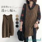ベスト レディース 秋冬 大きいサイズ ロング ジレ トップス 透かし編み レース ノースリーブ Vネック レイヤード 重ね着 袖なし 無地 秋 冬 きれいめ カジュ