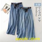デニムパンツ レディース ワイド パンツ ズボン ロング ボトムス ジーンズ ガウチョ UVカット 冷感素材 接触冷感 冷感 スカーチョ 薄手 柔らか ゆったり 美脚 体
