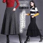 ワイドパンツ レディース ガウチョパンツ 秋 冬 九分丈 無地 ハイウエスト フレア ボトムス 体型カバー 着痩せ ゆったり 美脚 通勤 OL 上品 30代 40代