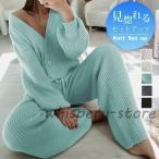 上下セット ニット セットアップ レディース 大きいサイズ 秋 冬 リブニット ニットカーディガン ワイドパンツ ウエストゴ