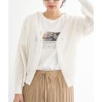 カーディガン 「羽織りに/オフィスカジュアル」透かしランダムリブVネッククロップドショートカーディガン レディース
