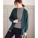 カーディガン 「JaVaジャバコラボ」ラフで上品な大人のゆるカジュアル。配色ステッチVネックワッフルカーディガン(長袖) レディース
