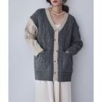 カーディガン 「2025AW」バイカラー Vネック ケーブルニット カーディガン レディース