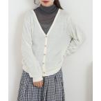 カーディガン 「羽織りに/オフィスカジュアル/冷房対策」透かしランダムリブVネッククロップドショートカーディガン レディース