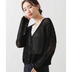 カーディガン 透かし編み花柄Vネックカーディガン レディース