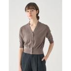 カーディガン Vネック5分袖クロップドコットンニットカーディガン レディース