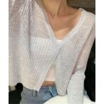 カーディガン Vネックショート丈シアーニットカーディガン レディース
