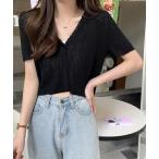 カーディガン Vネック 半袖 ニット コンパクト カーディガン レディース