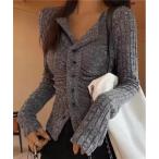 カーディガン 「 ammy. / エイミードット 」 Vネック シャーリング リブ カーディガン レディース