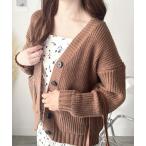 カーディガン ゆるっとラフに楽しむ ゆったりシルエットざっくり編みVネックボタンニットカーディガン レディース
