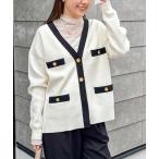 【SALE/50%OFF】UNTITLED 【アンサンブル可能】配色Vネックカーディガン アンタイトル トップス カーディガン ベージュ ブラック ホワイト ブルー ピンク【送料無料】