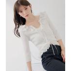 カーディガン 「SALON by Chico」7分袖 / フリルドッキングクロシェフレアニット レディース