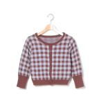 「Kastane」 チェック柄7分袖ニットカーディガン FREE ブラウン レディース