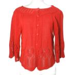 シビラ SYBILLA ニットカーディガン 7分袖 透かし編み 薄手 コットン ボートネック M 赤 レッド /X レディース