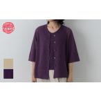 【ふるさと納税】服 リネン Vネックカーディガン7分袖 女性用《白田のカシミヤ》【全2色 M/2L】クリームイエロー ベリーパープル | 天然素材 春夏 レディース