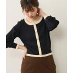「IENA」 7分袖ニットカーディガン - ネイビー レディース