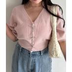カーディガン 「冷房・日除け対策に重宝!」前後2way7分袖シャーリングニットカーディガン レディース