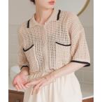 カーディガン 衿付き7分袖カーディガン レディース