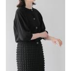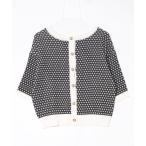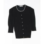 「LAISSE PASSE」 ビジュー7分袖ニットカーディガン FREE ブラック レディース