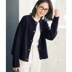 カーディガン ダブルフェイス クルーネックニットカーディガン レディース