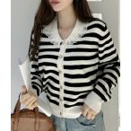 カーディガン レース 襟付き ニット カーディガン レディース