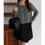 カーディガン 金ボタンパフスリーブショートニットカーディガン レディース