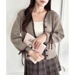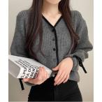 カーディガン バイカラーリボンカーディガン レディース