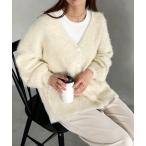 カーディガン モヘアライクシャギーニットルーズVネックカーディガン レディース メンズ