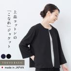 ノーカラージャケット レディース 50代 強撚糸コットン100% こなれ ジャケット 日本製 綿100% フォーマル 接触冷感