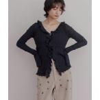カーディガン ランダムリブフリルニットカーディガン レディース