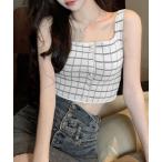 キャミソール ボーダーニット キャミソール / スクエアネック / ブラ紐隠し
