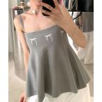 先着100名様【店内全品50%OFFクーポン】10/24 20時~■リボンデザインニットキャミソール トップス レディース キャミソール ニット 肩紐リボン 重ね着 レイヤード セット着用【メール便可/100】