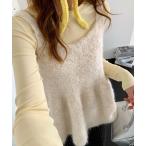 【期間限定20%OFF】ビスチェ レディース ニットビスチェ 秋 冬 ふわキラリ。ラメフェザーニットビスチェ キャミソール タンクトップ トップス ラメ ニット フェザー ジレ ベスト ノースリーブ クロップド レイヤード シャギー