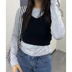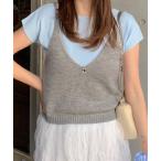 Vネック 重ね着 トップス ニットキャミ ニット インナー レイヤード 大人 秋冬 ノースリーブ タンクトップ ゆったり ゆとり 春秋 ニットキャミソール
