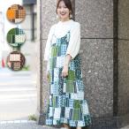 パッチワークプリントワンピース / ロングワンピース キャミソールワンピース レディース 秋 冬 総柄 ペイズリー 小花 ティアード Iライン 調節可能 mwjba040