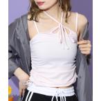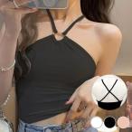 キャミソール レディース ホルターネックバッククロスフロントリングキャミソール