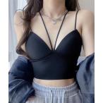 キャミソール ソリッドカラー ホルターネック コンパクト カップイン キャミソール