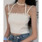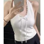 キャミソール レディース ホルターネック おしゃれ かわいい 白 黒 トップス インナー リブ