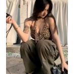 キャミソール レオパード柄 ホルターネックフリルキャミソール