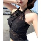 キャミソール 「2025SS」「FLW MADE」ホルターネックレースシースルービスチェキャミソール