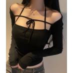 tシャツ 「2点セット」フロントリボンショートカーディガン+ ホルターキャミソール レディース