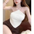 キャミソール 夏服 サマーニット ホルターネック 千鳥格子 ノースリーブ