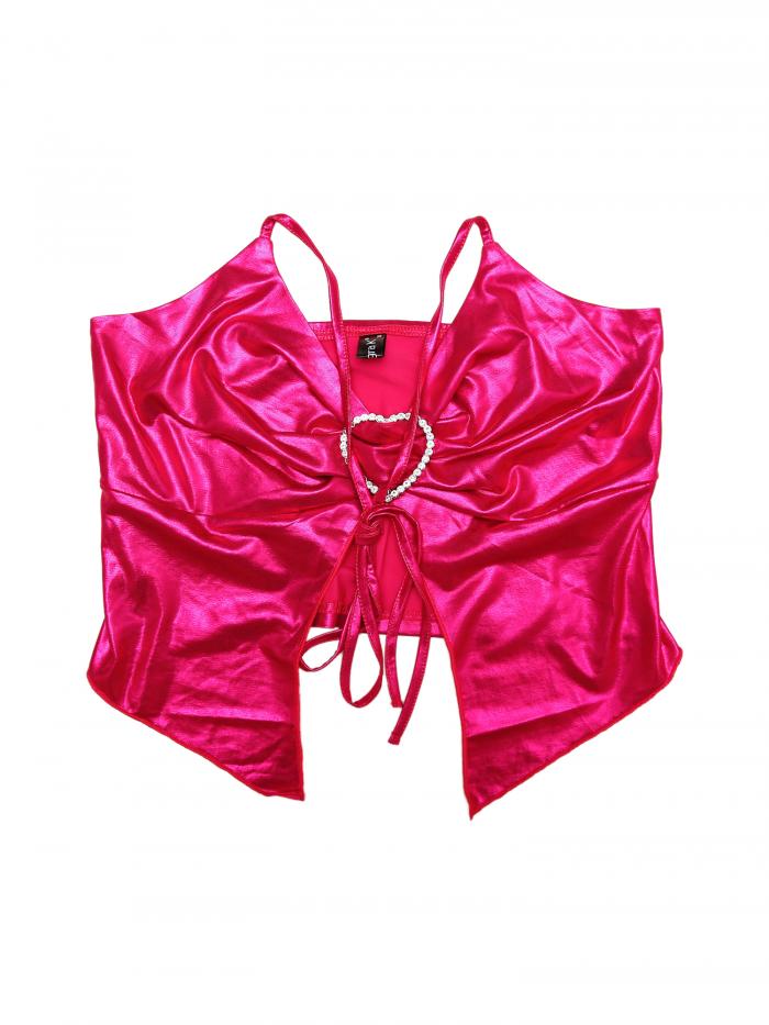 【期間限定10%OFF】Allegra K キャミソール メタリック ノースリーブトップス ハートホック パゲッティストラップ ホルターネック クラブウェア セクシー キュート レディース ホットピンクM