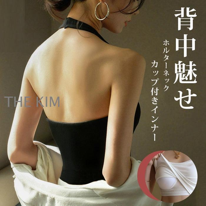 【期間限定10%OFF】キャミソール カップ付き ホルターネック タンク 肩だし インナー カップイン ノンワイヤー 下着 レディース 背中魅せ 見せブラ